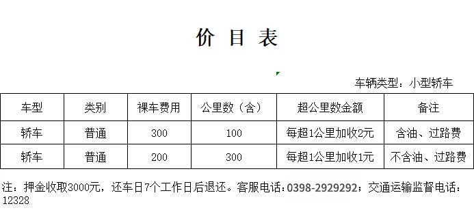 6、個人租車?yán)m(xù)收繳押金3000元,押金在還車日7個工作日后退回。